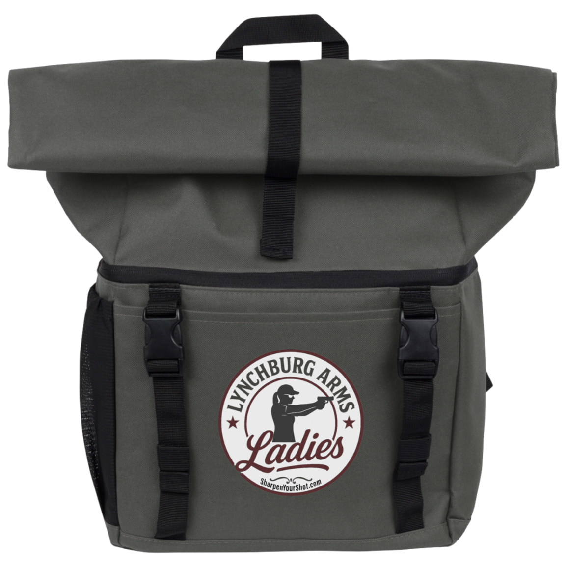 The Lynchburg Arms Ladies roll-top cooler is designed for range days, outdoor events, road trips, and long training days when cold drinks matter. Featuring a durable black exterior and the signature Lynchburg Arms Ladies logo front and center, this cooler is as functional as it is bold.